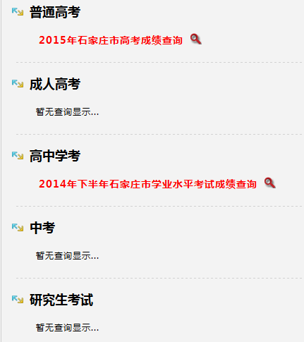 2015年河北石家庄市中考成绩查询官网http://www.sjzjyksxx.com.cn/: 河北中考网: 点击登录: 2015年石家庄中考成绩查询系统 下方为中考成绩查询入口图: